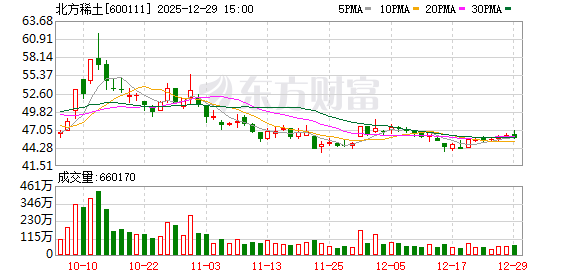 北方稀土12月29日大宗交易平台出现一笔成交,成交量7.43万股,成交金额340.07万元,大宗交易成交 价为45.77元。该笔交易的买方营业部为申万宏源证券有限公司证券投资总部,卖方营业部为国泰海通 证券股份有限公司总部。 进一步统计,近3个月内该股累计发生5笔大宗交易,合计成交金额为4193.59万元。 证券时报·数据宝统计显示,北方稀土今日收盘价为45.77元,下跌0.74%,日换手率为1.83%,成交额为 30.42亿元,全天主力资金净流出2.84亿元,近5日该股累计上涨0.48%,近5日资金合计净流出3.61亿 元。 两融数据显示,该股最新融资余额为67.91亿元,近5日减少5618.84万元,降幅为0.82%。 据天眼查APP显示,中国北方稀土(集团)高科技股份有限公司成立于1997年09月12日,注册资本 361506.5842万人民币。(数据宝) 12月29日北方稀土大宗交易一览 | 成交量 | 成交金额 | 成交价格 | 相对当日收盘折 | 买方营业部 | 卖方营业部 | | --- | --- | --- | --- | --- | --- | | (万股) | (万元) | (元) | ...