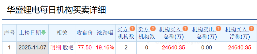 华盛锂电龙虎榜:2家机构进买入前5 净买入共2.46亿元