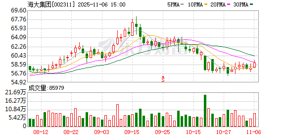 11月6日海大集团大宗交易一览 | 成交量(万 | 成交金额(万 | 成交价格 | 相对当日收盘折溢价 | 买方营业 | 卖方营业 | | --- | --- | --- | --- | --- | --- | | 股) | 元) | (元) | (%) | 部 | 部 | | 185.00 | 10900.20 | 58.92 | 0.00 | 机构专用 | 机构专用 | (文章来源:证券时报网) 证券时报·数据宝统计显示,海大集团今日收盘价为58.92元,上涨1.99%,日换手率为0.52%,成交额为 5.06亿元,全天主力资金净流入5074.07万元,近5日该股累计上涨1.53%,近5日资金合计净流入7698.74 万元。 两融数据显示,该股最新融资余额为2.18亿元,近5日减少1277.00万元,降幅为5.54%。 据天眼查APP显示,广东海大集团股份有限公司成立于2004年01月08日,注册资本166374.997万人民 币。(数据宝) 海大集团11月6日大宗交易平台出现一笔成交,成交量185.00万股,成交金额1.09亿元,大宗交易成交价 为58.92元。该笔交易的买卖双方均为机构专用席位。 进一 ...
