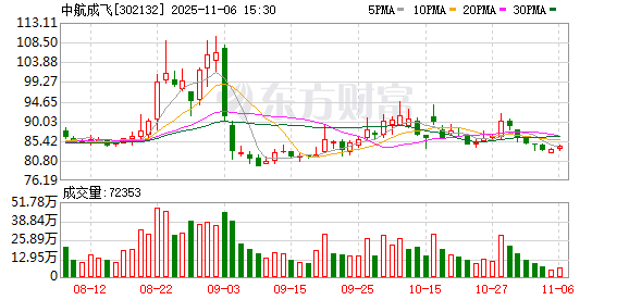 进一步统计,近3个月内该股累计发生3笔大宗交易,合计成交金额为5684.24万元。 证券时报·数据宝统计显示,中航成飞今日收盘价为84.28元,上涨1.12%,日换手率为1.23%,成交额为 6.08亿元,全天主力资金净流入3574.21万元,近5日该股累计下跌1.89%,近5日资金合计净流出3.46亿 元。 | 成交量 | 成交金额 | 成交价 | 相对当日收盘 | | | | --- | --- | --- | --- | --- | --- | | (万 | (万元) | 格 | 折溢价(%) | 买方营业部 | 卖方营业部 | | 股) | | (元) | | | | | 24.00 | 2198.40 | 91.60 | 8.69 | 平安证券股份有限公司北京 | 平安证券股份有限公司上 | | | | | | 北土城西路证券营业部 | 海临港新片区分公司 | 中航成飞11月6日大宗交易平台出现一笔成交,成交量24.00万股,成交金额2198.40万元,大宗交易成交 价为91.60元,相对今日收盘价溢价8.69%。该笔交易的买方营业部为平安证券股份有限公司北京北土城 西路证券营业部,卖方营业部为平安 ...