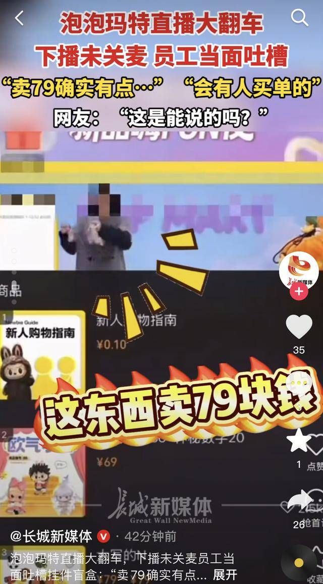 "79元"是道坎吗? 前有李佳琦说79元眉笔"哪里贵了"而翻车,11月6日晚,又有泡泡玛特工作人员"蛐蛐"自家79元盲盒挂链贵。 一句吐槽,让很多消费者觉得自己成了"韭菜"。 巧的是,11月7日,卖盲盒的泡泡玛特创始人成了河南首富,身家1820亿元。 01泡泡玛特79元产品被员工吐槽贵 11月6日,在泡泡玛特直播间内,有工作人员手持原价79元的DIMOO挂链盲盒脱口而出:"这东西卖79确实有点......过分了",另一工作人员随即回应:"没 事,会有人买单的。" 这段对话被录屏并广泛传播,引发部分用户不满。 大量网友对此解读为"内部吐槽公司定价高,暗讽消费者是韭菜"。 有人表示:"没有你们内部人员的吐槽,我真没意识到原来我是人傻钱也不多。" 还有人觉得,有种"花钱被人骂傻叉的感觉"。 但也有泡泡玛特爱好者认为,这本就是为情绪买单,而且IP有附加值。 7日,有记者从泡泡玛特内部人士处获悉,"确实发生了直播事故,公司正在紧急调查,但不会开除直播事故中相关员工。" 据悉,该工作人员吐槽的商品为"DIMOO新生日记系列-挂链盲盒",是泡泡玛特11月6日上市的新款挂链盲盒。 据热度新闻,该产品挂链含锌合金挂件、聚酯纤维 ...
