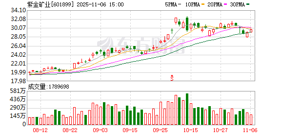 紫金矿业11月6日大宗交易平台出现一笔成交,成交量730.00万股,成交金额2.17亿元,大宗交易成交价 为29.70元。该笔交易的买方营业部为国泰海通证券股份有限公司总部,卖方营业部为机构专用。 11月6日紫金矿业大宗交易一览 | 成交量(万 | 成交金额(万 | 成交价格 | 相对当日收盘折溢价 | 买方营业部 | 卖方营 | | --- | --- | --- | --- | --- | --- | | 股) | 元) | (元) | (%) | | 业部 | | 730.00 | 21681.00 | 29.70 | 0.00 | 国泰海通证券股份有限 | 机构专 | | | | | | 公司总部 | 用 | (文章来源:证券时报网) 进一步统计,近3个月内该股累计发生24笔大宗交易,合计成交金额为19.64亿元。 证券时报·数据宝统计显示,紫金矿业今日收盘价为29.70元,上涨2.38%,日换手率为0.87%,成交额为 52.82亿元,全天主力资金净流入3.58亿元,近5日该股累计下跌4.53%,近5日资金合计净流出7.29亿 元。 两融数据显示,该股最新融资余额为68.81亿元,近5日减少2.81 ...