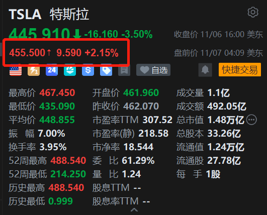 美股异动丨特斯拉盘前涨超2% 马斯克1万亿美元薪酬方案获批