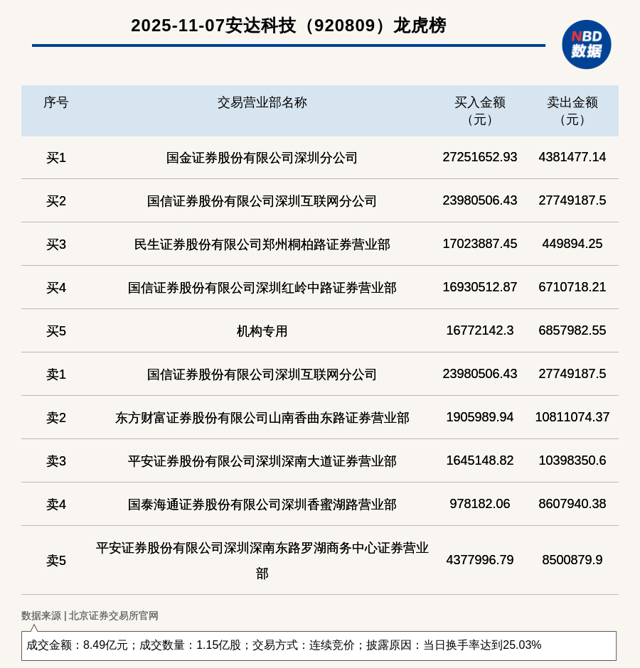 机构席位买入1677.21万 北交所上市公司安达科技登龙虎榜