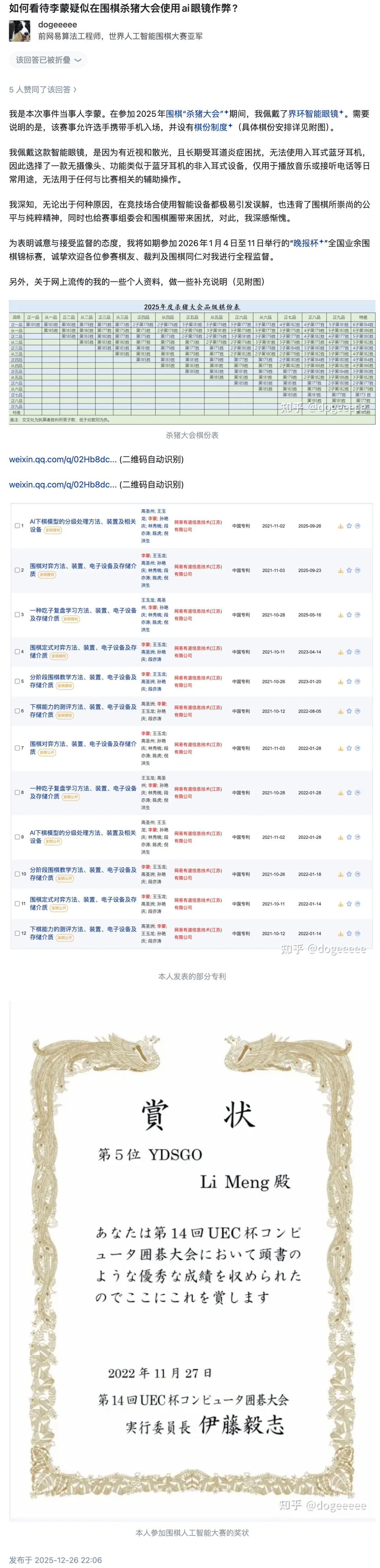 欢迎收看最新一期的 Hunt Good 周报! 在本期内容你会看到: 7 条新鲜资讯 4 个鲜明观点 12 月 27 日,特斯拉 Cybertruck 项目首席工程师在社交平台分享了这段视频后迅速引发传播。 马斯克本人也看到了这个视频,在评论区发了一个「 笑哭」表情包作为回应。这也是他继上次评价宇树 G1 在王力宏演唱会上的表现后,近期内第二 次对宇树机器人发表看法。 围棋比赛选手引发争议,被曝佩戴 AI 眼镜 Hunt for News|先进头条 马斯克再评中国机器人,测试时对工程师「下黑脚」 宇树科技 G1 人形机器人在动作训练期间的意外举动近日成为网络热点。 测试视频显示,当工程师演示格斗动作供机器人学习时,机器人突然抬脚踢向测试人员。 视频出处看左上角 2025 年 12 月 21 日至 26 日, 第八届「杀猪大会」全品级围棋大赛在浙江绍兴举行。 比赛采用 60 分钟保留时间每步加 10 秒制, 个人积分编排制共 11 轮, 按棋份对局分为九品, 其中前六品细分正品和从品, 后三品只有正品。 比赛期间,业余 5 段选手李蒙七轮连胜, 赢下多名正一品职业棋手,其后被发现佩戴 AI 眼镜并因此遭到质疑。 ...
