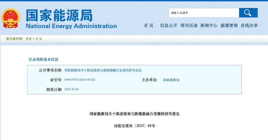 国家能源局:支持煤炭跨界新能源,开辟综合能源新赛道