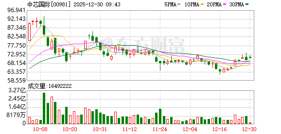(文章来源:每日经济新闻) 每经AI快讯,中芯国际(00981.HK)高开近3%,截至发稿,涨2.8%,报71.5港元,成交额5551.98万港 元。 ...