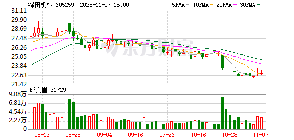 | 成交量 (万 | 成交金额 | 成交价 | 相对当日收盘 | 买方营业部 | 卖方营业部 | | --- | --- | --- | --- | --- | --- | | | (万元) | 格 | 折溢价(%) | | | | 股) | | (元) | | | | | 344.96 | 7071.68 | 20.50 | -10.40 | 中国银河证券股份有限公司 | 长江证券股份有限公司上 | | | | | | 台州银座北街证券营业部 | 海临港新片区证券营业部 | 据天眼查APP显示,绿田机械股份有限公司成立于2002年06月07日,注册资本17248万人民币。(数据 宝) 11月7日绿田机械大宗交易一览 绿田机械11月7日大宗交易平台出现一笔成交,成交量344.96万股,成交金额7071.68万元,大宗交易成 交价为20.50元,相对今日收盘价折价10.40%。该笔交易的买方营业部为中国银河证券股份有限公司台 州银座北街证券营业部,卖方营业部为长江证券股份有限公司上海临港新片区证券营业部。 证券时报·数据宝统计显示,绿田机械今日收盘价为22.88元,上涨0.48%,日换手率为1.84%,成交额为 ...