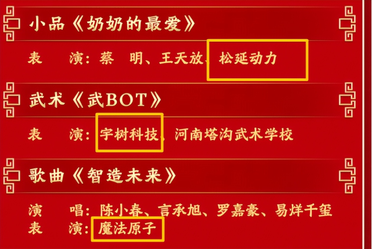 行业动态 - 2026年中央广播电视总台春节联欢晚会中机器人元素浓度超高 旨在通过节目向观众立体化展示中国机器人产业的发展状态 [1][4] - 晚会中的机器人表演了包括武术、跑酷、醉拳、跳马和后空翻在内的多种新动作 其表现超出了导演组的预期 [5][7] 公司表现 - 总台马年春晚主创团队对虚拟技术团队的呈现成果表示欢呼 [2] - 机器人表演团队在节目中增加了许多新动作 例如相较于去年的扭秧歌 今年新增了武术和跑酷等表演 [7]
