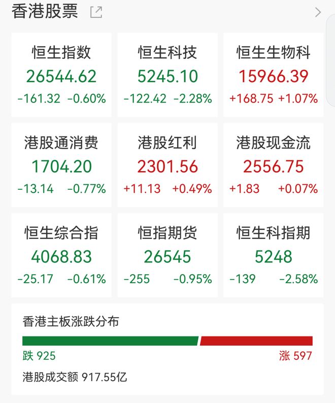 港股科网股大跌:百度、哔哩哔哩跌超5%,阿里巴巴跌超3%!机器人概念股逆市大涨,越疆涨超19%,优必选涨超6%