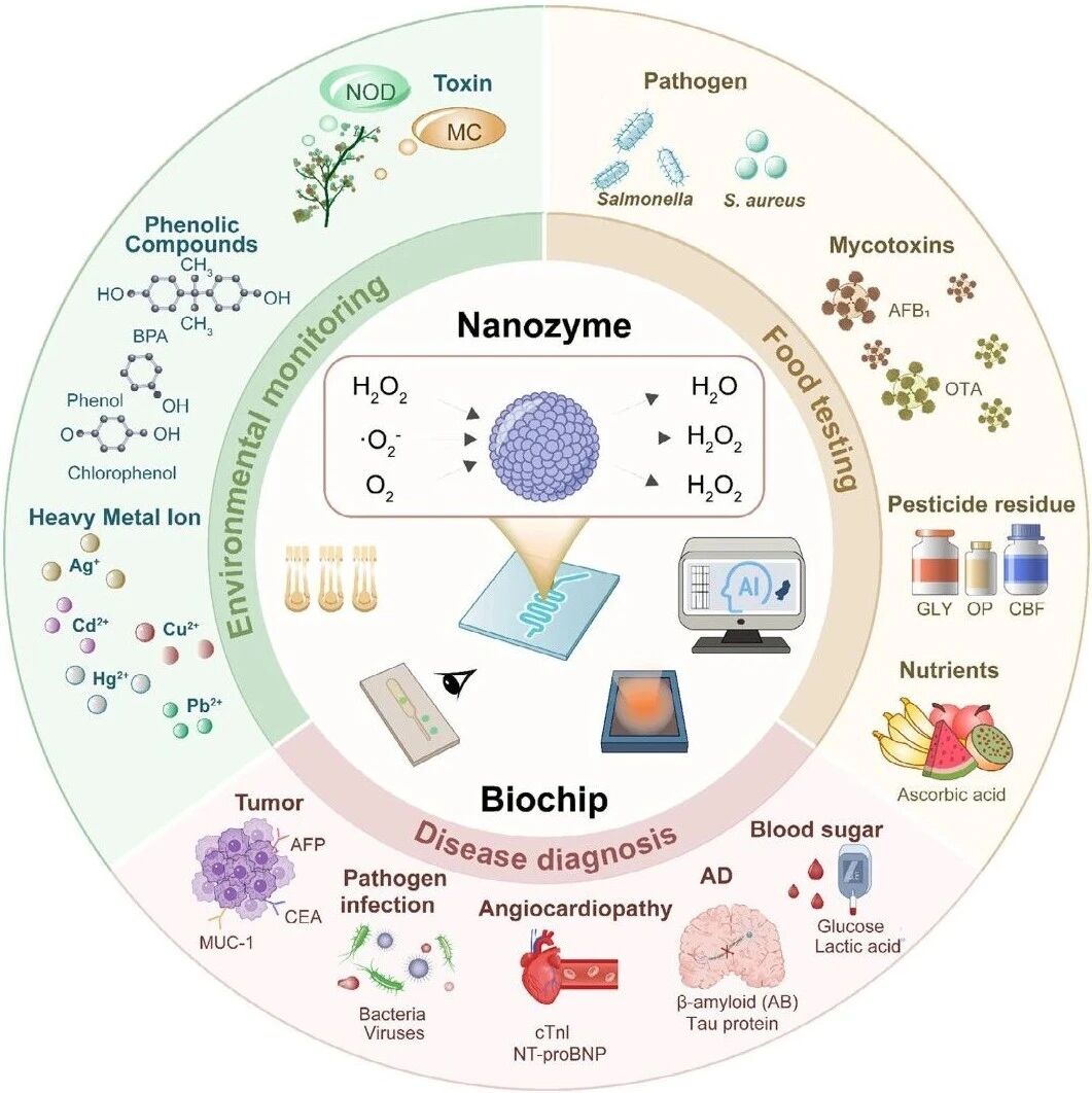 编辑丨王多鱼 排版丨水成文 在疾病诊断、食品安全与环境监测等应用场景中,检测系统需要在复杂基质干扰、样本量受限与现场操作 条件不稳定等条件下,实现可复现的信号放大、稳定读出与定量判读。纳米酶可通过催化反应实现信号放 大与多类型信号转换,生物芯片平台为微量样本处理、多通道集成与便携化读出提供器件载体。随着检测 任务从单指标走向多指标、从终点读数走向连续监测,信号形态与数据维度进一步增加,经验阈值与人工 判读在一致性、可迁移性与实时性方面存在约束。 因此,有必要从 " 材料与催化机制- 智能化生物芯片- 多场景应用 " 的完整链路出发,对纳米酶与生物芯 片的集成范式、信号转换机制以及 AI 参与的智能化处理路径进行系统梳理,形成可比较的研究框架与面向 应用的技术路线。 近日,北京航空航天大学 常凌乾 、 董再再 及香港城市大学 焦艳丽 作为共同通讯作者 ( 陈冬雨 、 郑旺 、 张志辉 、 于沈平 为共同第一作者 ) ,在 Advanced Science 期刊发表了题为: Nanozymes Integrated Biochips Toward Smart Detection System 的综述论文。 该综述 ...