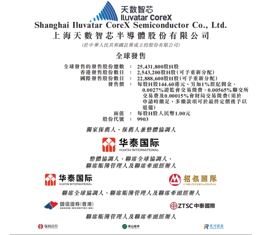 天数智芯招股:发行价为144.6港元,募资规模约为37亿港元