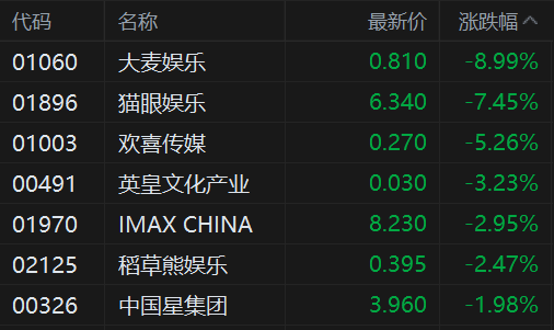 港股异动丨影视股大跌 猫眼娱乐跌超7% 春节挡票房同比大幅下滑
