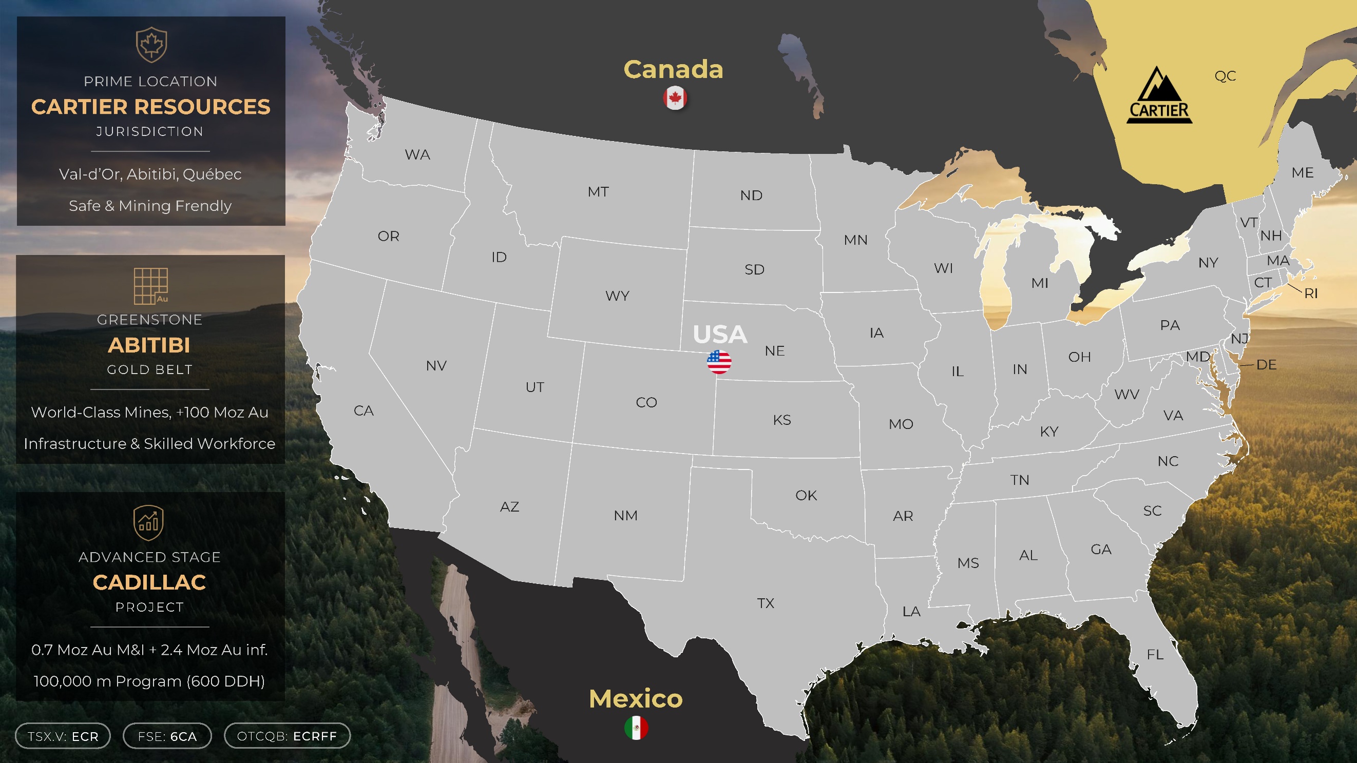 Cartier Begins Trading on the OTCQB Venture Market in the U.S. Under Symbol ECRFF