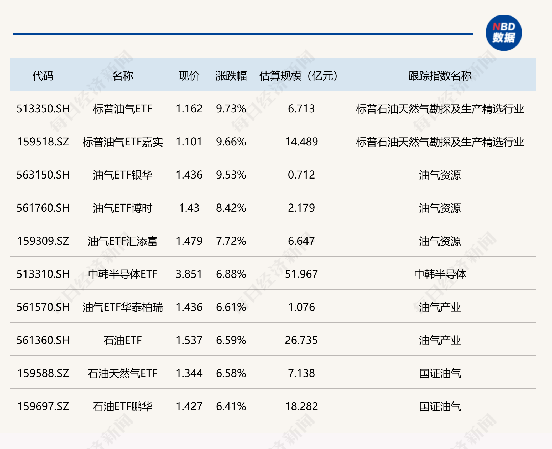 ETF今日收评 | 多只油气相关ETF涨超9%,影视ETF跌超7%