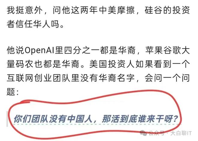 为什么硅谷投资人会抛出"团队没有华人,那活到底谁来干呀?" 这种看似夸张的疑问?难道华人工程师已经成了硅谷AI产业的"必需品"? 要搞懂这个问题,不用扯复杂的行业理论,看看近期Meta、xAI、OpenAI这几家巨头的动作就清楚了 ——从数十亿收购华人团队,到为争抢华人技术骨干不惜对簿公堂,华人在硅谷AI圈的分量,早被资 本和市场用真金白银投票确认。 先把那位投资人的原话摆出来:"团队没有中国人,那活到底谁来干呀?" 这句话初听像句玩笑,细品 全是行业现实。 不是说其他族裔的工程师不优秀,而是在AI研发最核心的算法攻坚、模型训练、工程落地这些环节, 华人团队的"能打"已经经过了长期验证。 美国顶尖AI人才中,毕业于中国高校的比例高达38%,超过美国本土培养的人才数量;Meta超级智能实 验室11位核心研究员里7位来自中国,xAI初创团队华人占比直接超40%。这些数据不是凭空来的,是硅 谷多年人才流动沉淀下的结果。 近期最能说明问题的,就是刚发生的Meta收购Manus案。12月30日,创始于中国的通用AI智能体Manus 宣布加入Meta,收购金额超20亿美元,创下国内AI团队从创立到被巨头并购的最快纪录。 ...