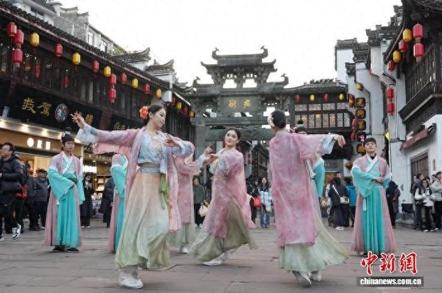 月31日,演员在屯溪老街里与游客开展互动。程晔 摄 2025年12 互动道具"会子"成为一大亮点,其设计融合宋代货币特征与老街手绘全景图,兼具收藏价值与实用性。 游客可通过参与NPC互动,或上传交通、住宿凭证申领"会子",凭其可在合作商户享受折扣,集齐特定 数量还能兑换定制礼品或手绘地图。"这种体验很新鲜,仿佛回到古代。"游客李娟娟说。(完) 2025年12 月31日,舞蹈演员在屯溪老街上表演节目。徐雅娜 摄 该项目以复原历史场景、唤醒文化记忆为核心,将屯溪老街打造成大型开放式演绎场,设置10个固定点 位NPC与3个流动NPC,通过舞剧表演、趣味游戏、即时互动等多元形式,串联起整个街区。渔夫捕 鱼、抛绣球招亲、中医问诊等互动场景,让游客仿佛邂逅"典籍"里的历史人物,深度沉浸古街风情。 中新网合肥1月1日电 ( 张俊 程梦君 任俊翔)抛绣球、听说书、练五禽戏,与扮成状元、说书人、大夫等 NPC(非玩家角色)互动。元旦假期,黄山市屯溪区屯溪老街"来屯嬉"沉浸式互动演绎项目颇受欢迎。 ...