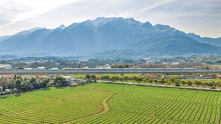 【大美中国】 《光明日报》(2026年02月01日 01版) [ 责编:任子薇 ] 近日,安徽省池州市青阳县蓉城镇百花村,山前飞驰而过的动车穿行在民居、田园间,构成一幅优美的画 卷。何清摄/光明图片 ...