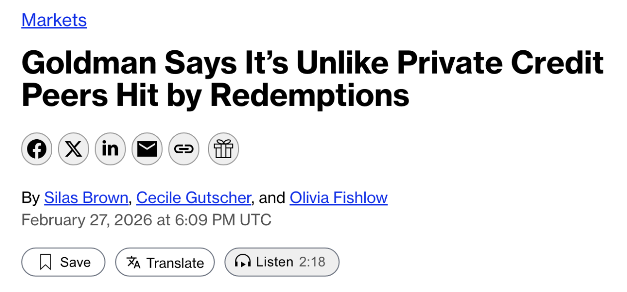 高盛:旗下私募信贷基金风险可控,与承压同行形成区分