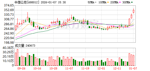 进一步统计,近3个月内该股累计发生65笔大宗交易,合计成交金额为29.00亿元。 证券时报·数据宝统计显示,中微公司今日收盘价为352.34元,上涨6.88%,日换手率为3.84%,成交额 为84.11亿元,全天主力资金净流入1.78亿元,近5日该股累计上涨29.19%,近5日资金合计净流入2.80亿 元。 两融数据显示,该股最新融资余额为35.93亿元,近5日增加6546.66万元,增幅为1.86%。(数据宝) 1月7日中微公司大宗交易一览 | 成交量 | 成交金 | 成交价 | 相对当日收 | | | | --- | --- | --- | --- | --- | --- | | (万 | 额(万 | 格 | 盘折溢价 | 买方营业部 | 卖方营业部 | | 股) | 元) | (元) | (%) | | | | 80.00 | 26184.00 | 327.30 | -7.11 | 中信证券股份有限公司上海 溧阳路证券营业部 | 国泰海通证券股份有限公司 上海徐汇区云绣路证券营业 | | | | | | | 部 | | 8.88 | 2906.42 | 327.30 | -7.11 | 国泰海通证券股份 ...