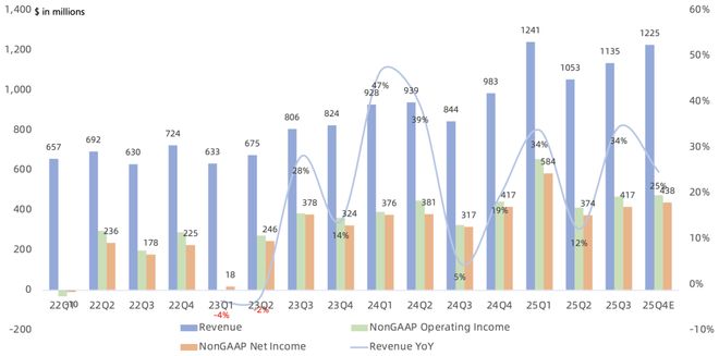 来源:市场资讯 (来源:Eric有话说) Arm FY26Q2财报要点: 纵使Arm拥有接近100%的毛利率,但GAAP经营利润却很低,甚至之前经常亏损,主要原因还是研发费 用高企,本季度占营收61%,销售及管理费用占营收22%,在本季度三费支出比例下降后,NonGAAP 经营利润率回升至41%。 本季度License营收受益于拿下3个第二代CSS licenses、分别在智能手机、平板和数据中心领域,目前 CSS licenses总数达到19份,遍布11家公司;全球排名前四的安卓手机供应商现在都在出货搭载CSS的设 备;本季度推出了最先进的移动计算平台Lumex CSS,来自oppo和vivo等合作伙伴的旗舰设备预计将在 今年晚些时候开始爬坡;本季度最大的license交易实际上来自中国; ACV 16亿美元,同比增长28%,环比增长5%;RPO 22.5亿美元,同比下滑6%,持续疲软,其中29%会 在未来12个月内确认收入,16%会在未来13-24个月内确认收入。 Royalty营收6.2亿美元,同比增长21%; 营收11.4亿美元,同比增长34%,环比增长8%; GAAP毛利率97.4%,同比提升1.2 ...