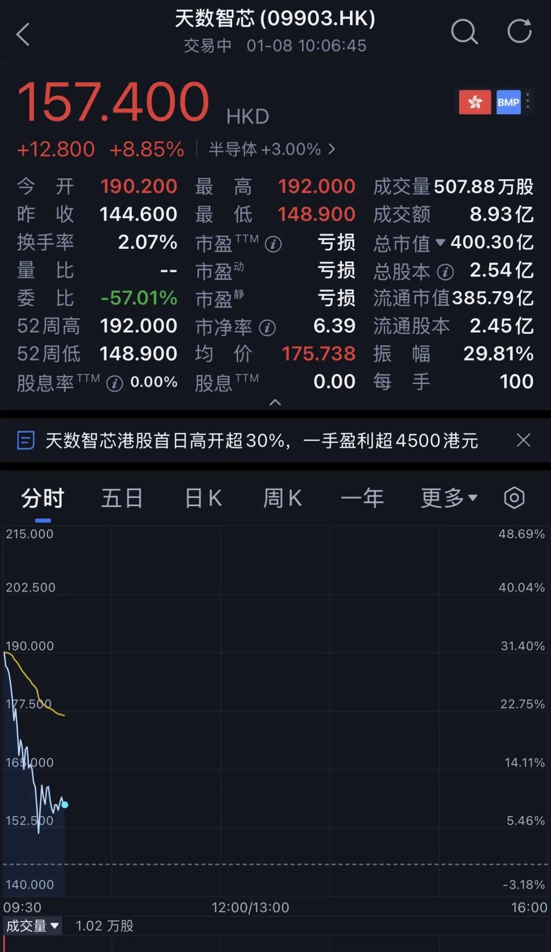上证报中国证券网讯(记者 何漪)1月9日,金浔资源在港交所主板上市。开盘后,金浔资源表现活 跃。截至10点38分,金浔资源报37.44港元/股,上涨24.8%,成交额达到2.85亿港元。 | < 日 | 金浔资源(3636) | | | | --- | --- | --- | --- | | | 01-09 10:38:08 | | | | | 20.6 37.440 额2.85亿 股本 1.47亿 市盈™ | | 万得 | | | | | 盟口 | | | 7.440 24.80% 换 20.66% 市值 55亿 市净 7.51 | | | | से स्व | 曲家 田 周K 月K | | | | 營加 | 均价:37.565 盘口 成交 | | | | | ------- 26.93%- 卖10 37.760 1000(1) | | | | | 卖9 37.740 -- (0) | | | | | 卖8 37.720 -- (0) | | | | | 卖7 37.700 5.10万(4) | | | | | 卖6 37.680 -- (0) | | | | 30.000 | 0.000 25 37.66 ...