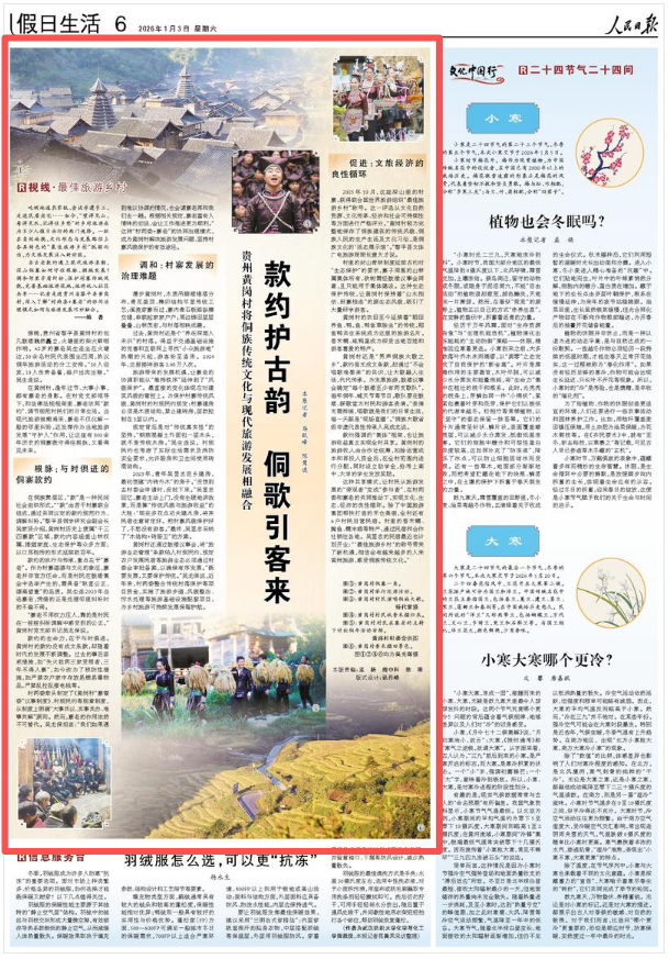 1月3日,《人民日报》刊发新闻《贵州黄岗村将侗族传统文化与现代旅游发展相融合款约护古韵侗歌引 客来》。 吃顿地道农家饭、尝试非遗手工、走进民居老宅……如今,"望得见山、看得见水、记得住乡愁"的乡村 旅游成为不少人假日出行的热门选择。一批在自然地貌、文化形态与发展路径上各具特色的"最佳旅游 乡村"脱颖而出,为文旅发展注入新动能。 当古老款约遇上现代旅游浪潮,深山侗寨如何守住根脉、拥抱发展?调和邻里矛盾纠纷、保护村寨传统 风貌、完善基础旅游设施、旅游收入社区共享……记者走进贵州省黎平县黄岗村,深入了解"村两委 +寨老"的协同治理模式如何与旅游发展巧妙融合。 "寨老不用权力压人,靠的是村民在一桩桩纠纷调解中感受到的公正。"黄岗村党支部书记吴龙保说。 款约的生命力,在于与时俱进。黄岗村的款约没有成文条款,却随着时代的发展不断调整。过去的事后 惩戒措施,如"失火致两三家受损者,三年不得入寨",如今改为了预防性措施,如严禁农户家中存放易 燃易爆物品,严禁乱拉乱接电线等。 村两委牵头制定了《黄岗村"寨管委"议事制度》、村规民约等规章制度,从制度上明确"大事共议、实 事共办、难事共解"原则。然而,寨老的作用依然不可替代。吴龙 ...