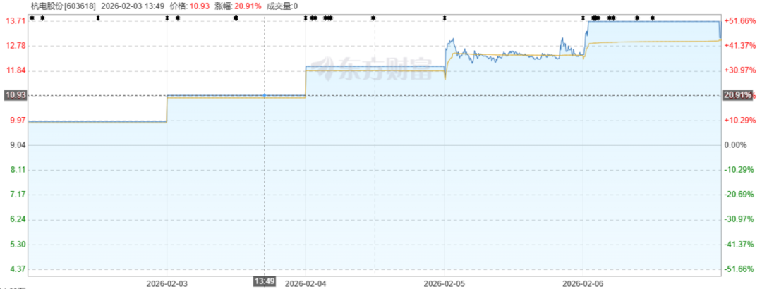 公司澄清与市场异动 - 公司发布公告,澄清其被部分媒体列为“光纤”概念股,并强调主营业务未发生改变 [1] - 公司股票在2026年1月30日至2月6日期间,六个交易日中有五个交易日涨停,累计涨幅达66.79%,显著高于同行业上市公司 [1] - 公司指出,2月5日和2月6日换手率分别为29.43%和18.02%,明显放量,交易风险较大,股价已严重偏离公司基本面 [1] 公司经营与业务构成 - 公司近期日常生产经营情况正常,内外部经营环境未发生重大变化 [3] - 公司主营业务为输配电气、光通信和电子信息材料,其中光通信业务2024年营业收入为3.30亿元,仅占2024年度经审计营业收入的3.73% [3] - 公司注意到近期市场对电信市场光纤光缆产品及算力数据中心相关产品关注度较高,但主营业务未变 [3] 公司财务表现 - 公司预计2025年年度归属于上市公司股东的净利润为-3亿元左右,扣除非经常性损益的净利润同样为-3亿元左右 [3] - 业绩预亏主要原因是报告期内对全资二级子公司杭州永特信息技术有限公司计提固定资产减值准备2.64亿元 [4] - 业绩预亏的另一原因是报告期内受主要原材料价格上涨影响,毛利率同比下滑 [4] 公司背景与市场数据 - 公司前身为杭州电缆厂,是集电线电缆产品设计、研发、制造、销售于一体的国家高新技术企业,于2015年2月17日在上交所上市 [3] - 截至2026年2月6日收盘,公司股价涨停报13.71元,最新总市值为95亿元 [5]