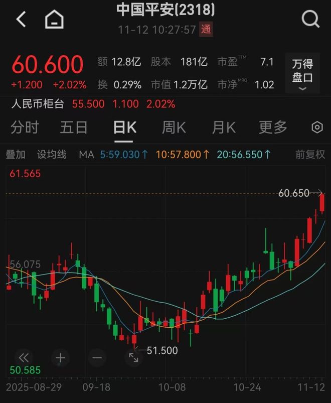 编辑丨瑜见 | < ロ | Wind香港保险(887185) 19034.04 459.37 2.47% | | Q | | --- | --- | --- | --- | | 资料 | 成分 资讯 | 相关基金 | 月度收益 | | 名称 | | 现价 | 涨跌幅 == | | 中国人寿 2628.HK | | 27.580 | 4.08% | | 新华保险 1336.HK | | 52.600 | 4.06% | | 中国大平 0966.HK | | 19.950 | 3.80% | | 中国大保 | | 34.200 | 3.45% | | 2601.HK | | | | | 中国再保险 | | 1.650 | 3.12% | | 1508.HK | | | | | 友邦保险 | | 84.400 | 2.49% | | 1299.HK | | | | 11月12日,中国平安AH股盘初拉升,截至发稿, 港股股价突破60港元/股,创2021年8月以来新高。 与此同时,港股保险股走强,中国人寿、新华保险涨超4%,中国太平、中国太保等涨超3%。 ...