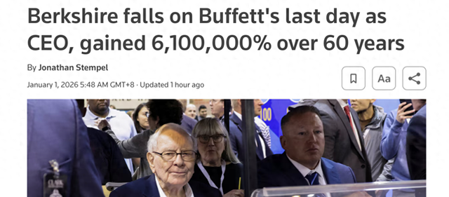 股价表现与市场反应 - 在巴菲特即将卸任首席执行官职务前夕,伯克希尔哈撒韦公司A类股股价下跌600美元,跌幅0.1%,收于754,800美元;B类股下跌1.06美元,跌幅0.2%,收于502.65美元 [1] - 同期标准普尔500指数下跌0.7% [1] 长期投资回报与历史业绩 - 自1965年巴菲特接任伯克希尔CEO以来,长期持有该公司股票的投资者获得了约6.1万倍的惊人回报率 [3] - 该回报率远超同期标普500指数约460倍的涨幅(含股息) [3] - 伯克希尔在2025年及过去十年中从未出现年度亏损,但其股价表现仍略逊于大盘 [3] 公司业务与财务状况 - 伯克希尔的业务版图庞大,旗下子公司包括保险公司Geico、BNSF铁路公司、数十家制造与能源企业,以及Brooks、Dairy Queen、Fruit of the Loom、See's Candies等知名零售品牌 [3] - 截至2025年9月底,公司持有3817亿美元的现金及现金等价物 [3] - 截至2025年9月30日,公司股票投资组合价值2832亿美元,重仓股包括苹果公司和美国运通公司 [4] 管理层变动与继任计划 - 95岁的巴菲特在卸任CEO后,将继续担任董事长,并计划每日前往位于内布拉斯加州奥马哈的伯克希尔总部(距其住所约3.2公里),协助继任者开展工作 [3] - 接棒CEO的是63岁的格雷格·阿贝尔,他于2000年加入伯克希尔,自2018年起担任副董事长,负责管理非保险业务 [4] - 副董事长阿吉特·贾恩将继续负责保险业务的日常运营,阿贝尔则将主管BNSF铁路、制造业及能源板块 [4] - 豪华飞机租赁公司NetJets的首席执行官亚当·约翰逊将直接接管此前由阿贝尔负责的消费品、服务及零售业务 [4] - 伯克希尔尚未公布股票投资组合的新任管理者,此前外界普遍认为的潜在接任者托德·康姆斯已于本月离职加入摩根大通 [4] - 巴菲特曾在2024年5月表示,阿贝尔完全有能力承担管理股票投资组合的职责 [4]