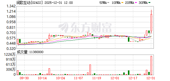 (文章来源:每日经济新闻) 每经AI快讯,润歌互动(02422.HK)尾盘放量拉升,截至收盘涨64.29%,报1.15港元,成交额1047.67万港 元。 ...