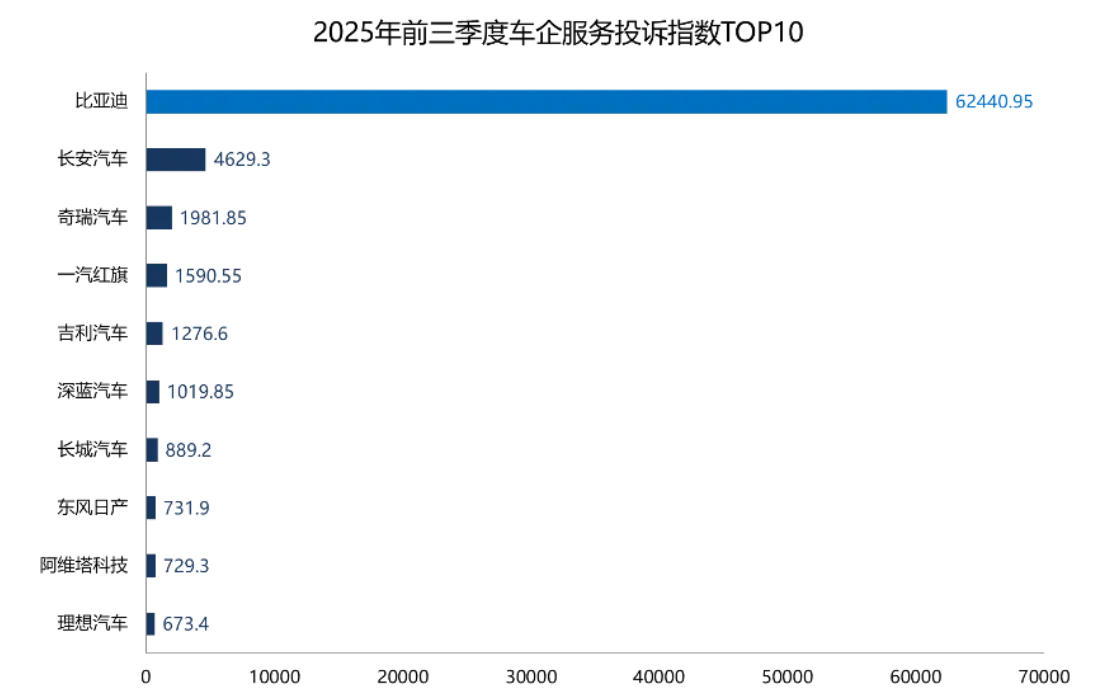 2025年前三季度车企服务投诉指数飙升 比亚迪成主要推手