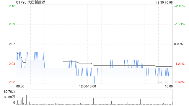 大唐新能源获长城人寿保险增持1000万股 每股作价约2.13港元