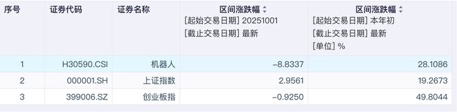 11月以来,人形机器人板块迎来多重催化。 据证券时报,高盛在最新发布的调研报告中提到,中国9家机器人供应链公司或尚未获得大规模的确定 性订单,当前处于"抢跑"阶段,为预计在2026年下半年开启的人形机器人量产做着极其乐观的产能准 备。 从整体的行情来看,中信建投研报分析认为,随着大盘突破4000点位,当前阶段指数依然震荡上行但涨 幅放缓,经济基本面改善或新兴产业/赛道业绩释放消化偏高的估值水平。这一阶段可能出现风格切换 行情,估值高企但增速预期下调,板块可能出现阶段性调整。 资料显示,机器人指数ETF(560770)追踪中证机器人指数(H30590),据中证指数官网,标的指数前 十大成份股涵盖了汇川技术、科大讯飞、大华股份、大族激光、中控技术、石头科技、双环传动、机器 人、科沃斯、云天励飞。从成份股所属的申万三级行业分布来看,中证机器人指数的前三大行业依次为 工控装备(占比20%)、机器人(占比14%)、横向通用软件(占比9%),覆盖了机器人产业链真上 游—零部件、中游-本体制造和下游-系统集成。 11月11日午后,三大指数再度下探,科技赛道走弱,机器人指数ETF(560770)下跌0.82%,成分股绿 的谐 ...
