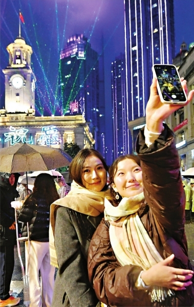 掌声和欢笑在城市上空响起。《我爱你,中国》的旋律与激光划破夜色,在江汉关古老 的墙面上映出金色大字——"共祝愿,祖国好"。此时的长江之畔灯火辉煌,两江四岸流光溢 彩,武汉这座英雄城市,以灿烂的姿态迎接新年的到来。 百年钟楼前首次响起交响乐 "这是我第一次来武汉跨年,没想到,现场这样磅礴,我会如此激动。此时此刻,我就 想拥抱身边的每一个人。"12时刚过,来自广州的游客关鸿激动地说。 正如关鸿所说,置身此刻的江汉关,很难不被感染。武汉以一场融合激光、交响乐与钟 声的盛典,为2025年画上句点——光在楼上书写,乐在风中流淌,钟声在江面回荡,整座城 市都成了告别与迎接的舞台。 2025年12月31日晚11:45,江汉关广场,"你好,2026"江汉关跨年光影秀活动正式启 幕,《长江之歌》拉开跨年盛宴的帷幕,用悠扬乐声为全国观众送上辞旧迎新的祝福。这是 武汉爱乐乐团专门为跨年夜录制的展播乐曲,也是百年钟楼第一次以交响乐为跨年夜开场。 2025年12月31日晚,"你好,2026"江汉关跨年光影秀在江汉关广场举行,年轻人举着手机直播。 "10、9、8……3、2、1"2025年12月31日晚,2025年的最后10秒钟,江汉关广 ...