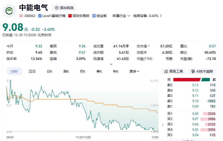 突然终止。 中能电气(300062)12月31日晚间公告称,公司于2025年12月30日召开第七届董事会第二次会议,审议通过了《关于终止重大资 产重组的议案》,董事会同意终止筹划收购山东达驰电气有限公司等65%股权及转让方对标的企业享有的债权的重大资产重组事 项。 公告显示,公司此前分别于2025 年12月5日、2025年12月23日召开第六届董事会第三十次会议及2025年第一次临时股东大会,审议 通过《关于参与竞拍山东达驰电气有限公司、山东达驰高压开关有限公司、水发驰翔电气(山东)有限公司65%股权及转让方对标 的企业享有的债权的议案》。为深度契合公司产品由中压向高压领域延伸的战略布局,突破高压核心技术与市场资源壁垒,提升 公司综合竞争水平,公司拟通过在山东产权交易中心摘牌并支付现金的方式收购山东达驰电气有限公司、山东达驰高压开关有限 公司、水发驰翔电气(山东)有限公司65%股权及转让方对标的企业享有的债权。交易对方为山东城翔产业投资合伙企业(有限合 伙)、山东水发电力集团有限公司。 对于终止筹划本次重大资产重组的原因,中能电气称,自公司首次披露拟参与竞拍股权暨重大资产重组的提示性公告后,各方均 积极推进本 ...