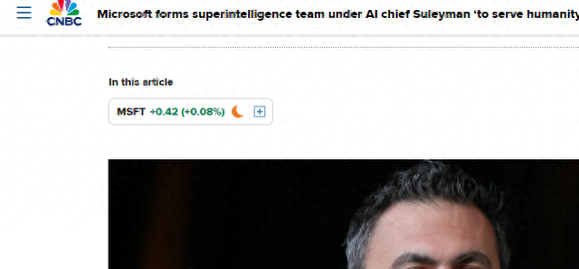 当前,微软在AI领域布局多元:既通过Azure云平台支持OpenAI运行,持有其1350亿美元股权,又引入 谷歌、Anthropic(前OpenAI高管创办)的模型,降低对单一平台依赖。此次新团队组建,进一步完善 其AI研发矩阵。 针对投资者对 AI"高投入低回报"的担忧,苏莱曼明确表态:"不会不计成本、毫无限制地打造超级智 能",强调技术研发需兼顾可控性与实际价值。(旺旺) CNBC报道称,苏莱曼是DeepMind联合创始人,2022年离开谷歌后创办AI初创公司Inflection,去年携团 队核心成员加入微软。他在社交媒体中强调,新团队并非研发"虚无缥缈的超级智能",而是打造"服务 人类的实用技术",将聚焦教育智能助手、医疗诊断、可再生能源生产三大方向,力求实现临床场景专 家级诊断与规划能力。 来源:环球网 【环球网科技综合报道】11月7日消息,据外媒CNBC报道,微软宣布成立MAI超级智能团队,由旗下 AI部门CEO穆斯塔法・苏莱曼亲自领衔,专注于先进AI研究。此举距Meta斥资数十亿美元组建超级智 能实验室仅数月,引发行业对AI顶尖研发赛道的关注。 ...