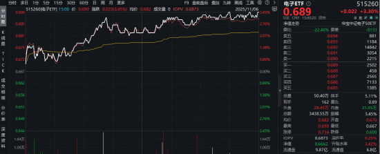 超200亿主力资金抢筹!存储芯片涨价五成+ AMD重磅利好,电子ETF(515260)大涨3.3%!寒武纪飙升9%