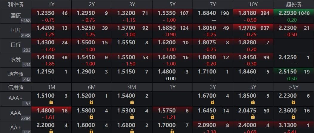 投资理念 - 投资决策应基于对未来趋势的判断,而非历史成本或成交价,需跟随市场趋势进行交易 [1] 宏观与市场环境 - 地缘政治冲突(美伊)不确定性高,影响市场情绪,美股曾延续大跌 [5] - 特朗普对伊朗政策言论反复,在油价高于100时态度缓和(TACO),油价回落后转为强硬 [10] - 伊朗选择在美股交易时段前发布封锁消息,在美股停盘后发布解封消息,被指有意影响市场 [11] 资金与流动性 - 央行公开市场操作净投放2615亿元(开展2695亿元逆回购,到期80亿元),维持流动性均衡偏松 [3] - 银行间资金利率保持低位平稳,DR001报1.31%,DR007报1.43% [3] - 银行间质押式回购成交量汇总为69615.80亿元,较前一日减少5199.12亿元 [4] - 主要期限回购利率中,R001加权利率1.37%,下行1bp;R007加权利率1.49%,上行9bp;R014加权利率1.52%,下行1bp [4] 债券市场 - 资金面宽松及避险情绪推动下,长债收益率明显下行,利率全线下跌 [3][5] - 10年期国债活跃券(250022)收益率收于1.8100%,较前一日下行0.80bp [13] - 10年期国开债活跃券(250220)收益率收于1.9530%,下行1.75bp [13] - 超长期国债(2500002)收益率收于2.2730%,下行2.45bp [13] - 短端债券表现尤为强势,收益率下行幅度令市场参与者感到“头晕目眩” [7] - 地缘冲突下,国债期货与黄金价格相关性显著上升,同跌交易通胀逻辑,同涨交易避险逻辑 [9] 股票市场 - 股市当日探底回升 [5] - 恒生科技指数波动剧烈,被调侃若无法忍受一季度15%的下跌,则将错过单日0.5%的暴涨 [6][8] - 有观点戏称当前市场策略是“走股神的路,让股神无路可走” [12] 利率债市场行情概览 - 利率债各期限收益率普遍下行,其中国债10年期收益率下行0.80bp至1.8100%,国开债10年期下行1.75bp至1.9530% [13][14] - 信用债方面,高评级(AAA)品种收益率亦呈现下行,例如3M期下行0.38bp,1Y期下行0.60bp [14]