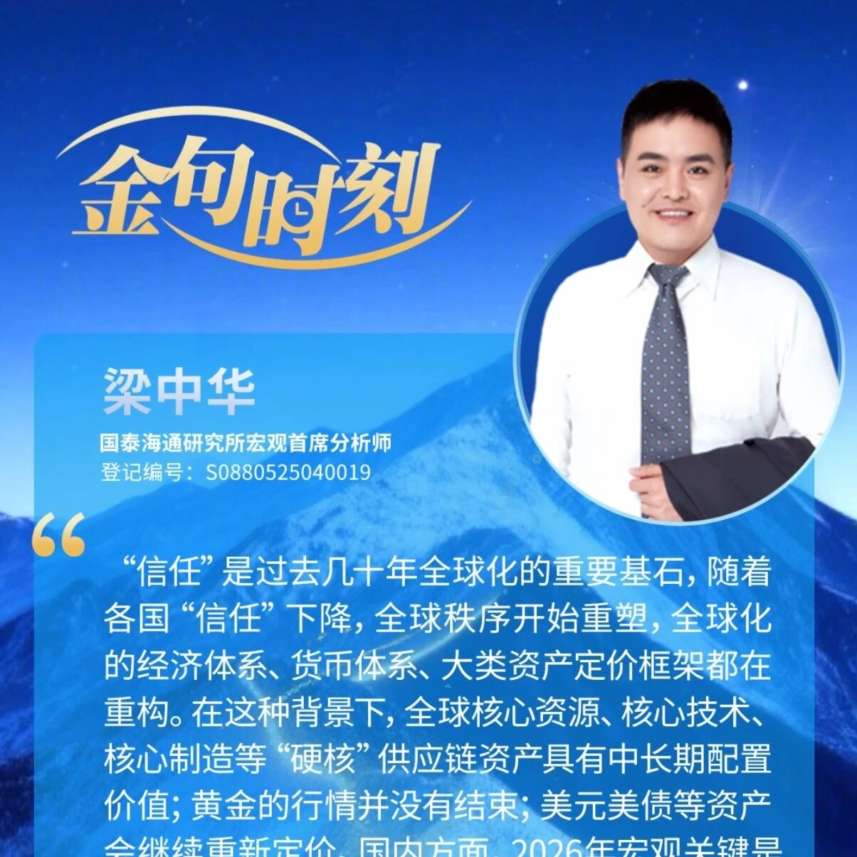 金句时刻|宏观梁中华:“信任”的重定价——国泰海通“远望又新峰”2026春季策略会