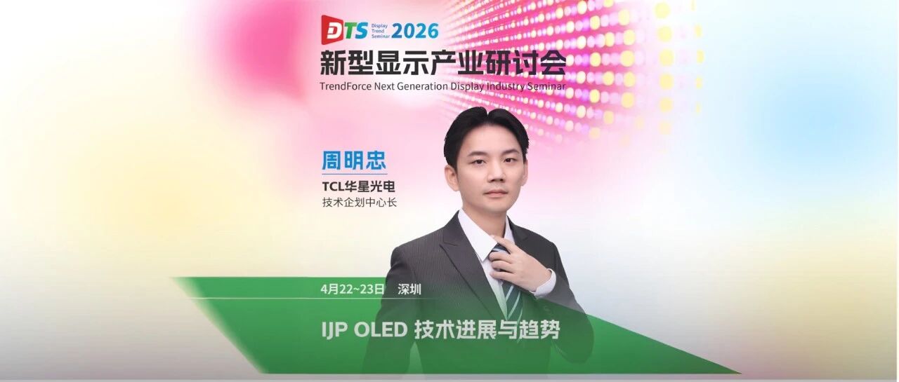印刷OLED技术概述 - 印刷OLED显示技术正从实验室加速走向商用,被视为全球显示产业最具颠覆性的技术路线之一[2] - 该技术采用喷墨打印技术,将发光材料精准打印在玻璃基板上,理论上能减少约30%的材料损耗,从而降低生产成本[2] TCL华星在印刷OLED领域的技术与产能布局 - TCL华星光电在印刷OLED领域拥有十余年技术积累,掌握了从材料配方、喷墨打印工艺到像素设计的完整核心技术体系[2] - 公司具备从面板设计、驱动背板到模组制造的全产业链能力[2] - 公司于2025年启动了全球首条G8.6代印刷OLED产线(t8项目)建设,预计2027年下半年实现量产[2] - 公司位于武汉的G5.5代印刷OLED中试线也在2025年宣布扩产[2] 2026新型显示产业研讨会(DTS)OLED显示专场议程要点 - 论坛将探讨OLED产业未来的发展新风向,解析前沿动态[8] - TrendForce集邦科技研究副总经理范博毓将分享“8.6代线启幕:AMOLED跨入IT领域的战略转折与格局重构”[10] - 京东方将探讨“大世代OLED的产业演进与战略机会”[10] - 拓维将介绍“大世代FMM的国产化与技术挑战”[10] - TCL华星光电技术企划中心长周明忠将分享“IJP OLED技术进展与趋势”[2][10] - 恒米旺将介绍“国产OLED红光材料的技术突破与产品化实践”[10] - 维信诺将探讨“ViP制程下的AMOLED技术突破与未来显示解决方案”[10] - 联发科技术架构经理叶碧纯将分享“极致画质与功耗的完美平衡:端到端AMOLED系统优化”[10] - TrendForce集邦科技OLED技术与市场首席专家周诗博将解析“OLED产业新动向: 技术创新全景解析”[10]
