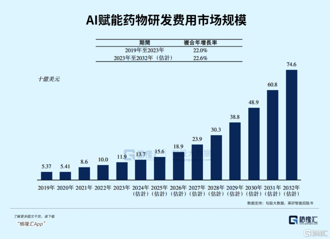编者按:英矽智能凭借生成式AI平台,提高了药物研发的效率,已开发出多个潜力管线,且与多家跨国制药巨头达成了合作,通过自主研发+对外授权构 筑了一定的护城河。 英矽智能成立于2014年2月10日,由Alex Zhavoronkov博士创立,是一家AI驱动药物发现及开发公司。 目前,公司已透过自主开发的生成式人工智能平台Pharma.AI产生逾20项临床或IND申报阶段的资产,其中三项资产已授权予国际制药及医疗保健公司, 合约总价值最高为21亿美元,以及一项处于自主开发阶段的II期资产,在业界中处于相对较为先进的阶段。 01、行业背景:AI可以提升药物发现流程中各阶段的效率 AI药物发现及开发(AIDD)正成为制药产业日益重要的趋势。 AI技术可以应用于药物开发的早期与后期阶段,有助于更高效率地识别靶点、设计分子并优化临床试验。 英矽智能招股书中预期,全球AIDD市场的规模将由2023年的119亿美元增加至2032年的746亿美元,复合年增长率为22.6%。 基于AI的药物发现的主要优势在于,AI可以提升流程中各阶段的效率,应对药物发现中的关键挑战。 AI可分析庞大且复杂的数据集,以识别潜在候选药物、发掘生物标志 ...
