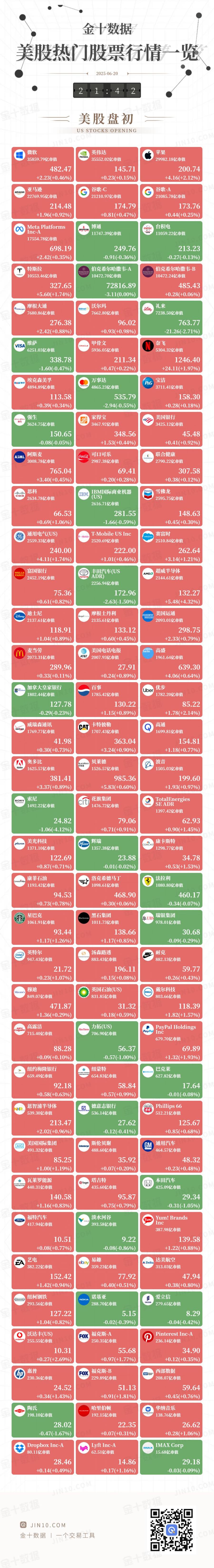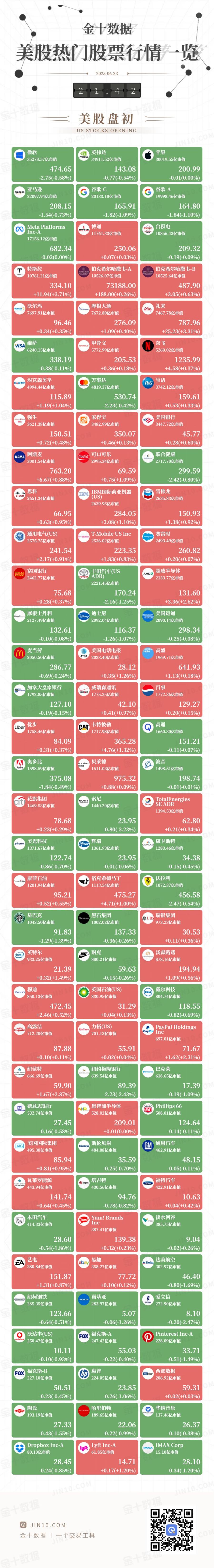 金十图示:2025年06月23日(周一)美股热门股票行情一览(美股盘初)