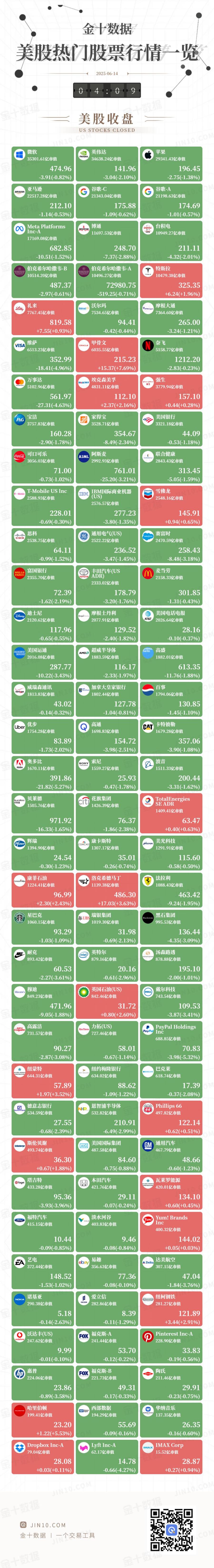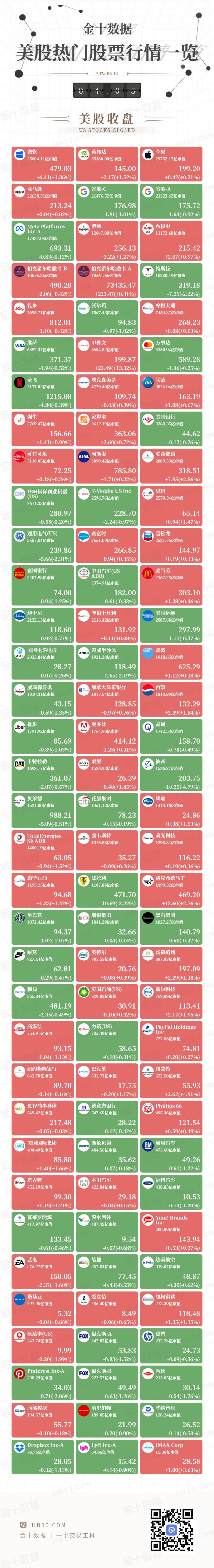 金十图示:2025年06月13日(周五)美股热门股票行情一览(美股收盘)