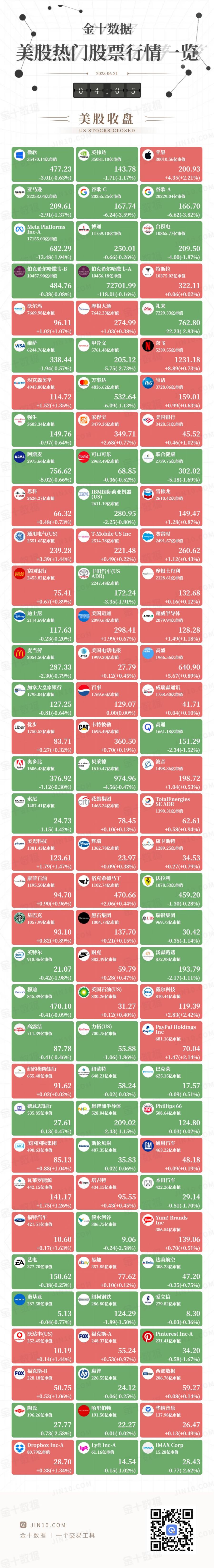 金十图示:2025年06月20日(周五)美股热门股票行情一览(美股收盘)