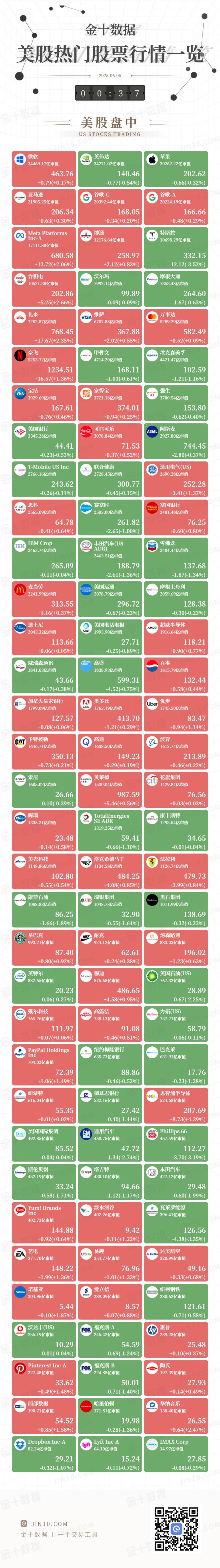 金十图示:2025年06月03日(周二)美股热门股票行情一览(美股盘中)