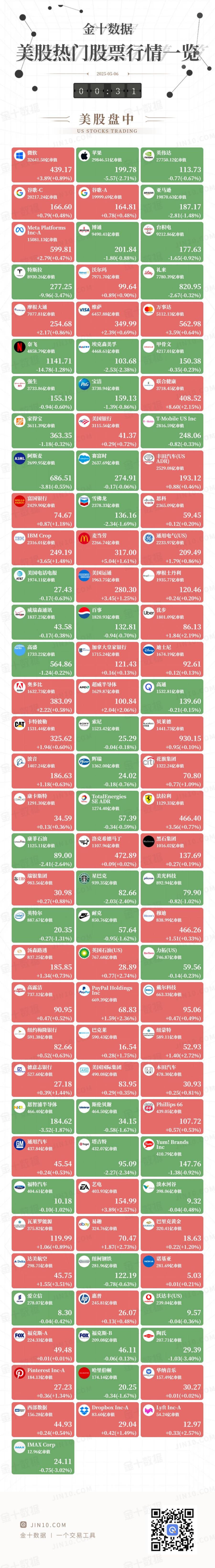 金十图示:2025年05月05日(周一)美股热门股票行情一览(美股盘中)