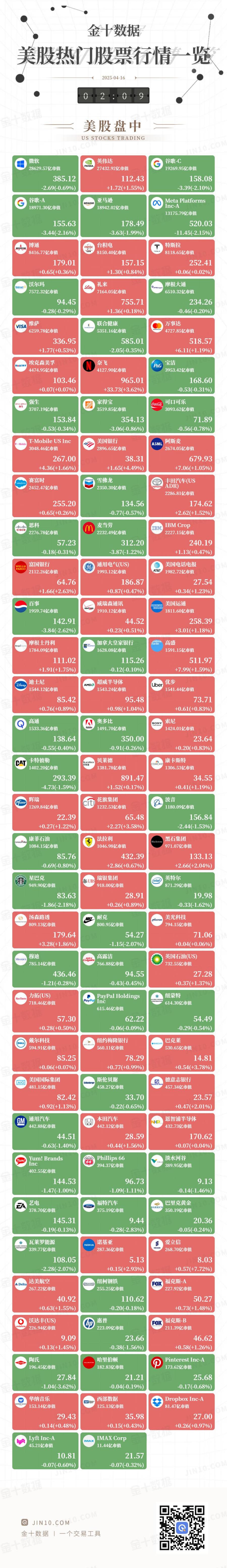金十图示:2025年04月15日(周二)美股热门股票行情一览(美股盘中)