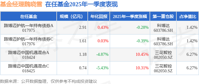 魏晓雪2025年一季度表现,路博迈中国机遇混合A基金季度涨幅10.45%