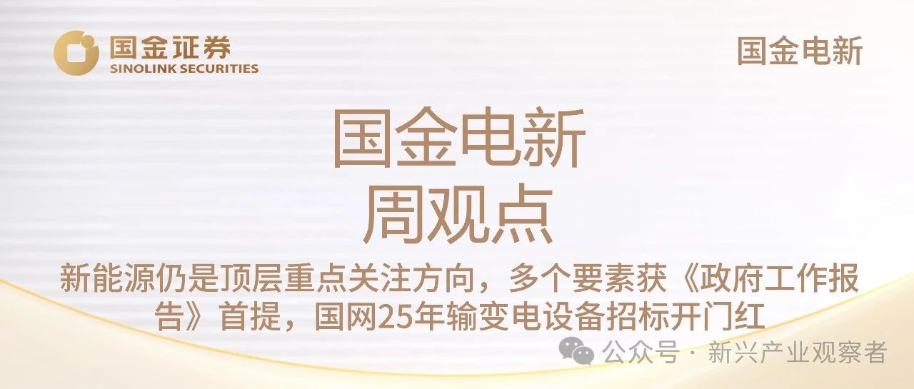 【国金电新 周观点】新能源仍是顶层重点关注方向,多个要素获《政府工作报告》首提,国网25年输变电设备招标开门红
